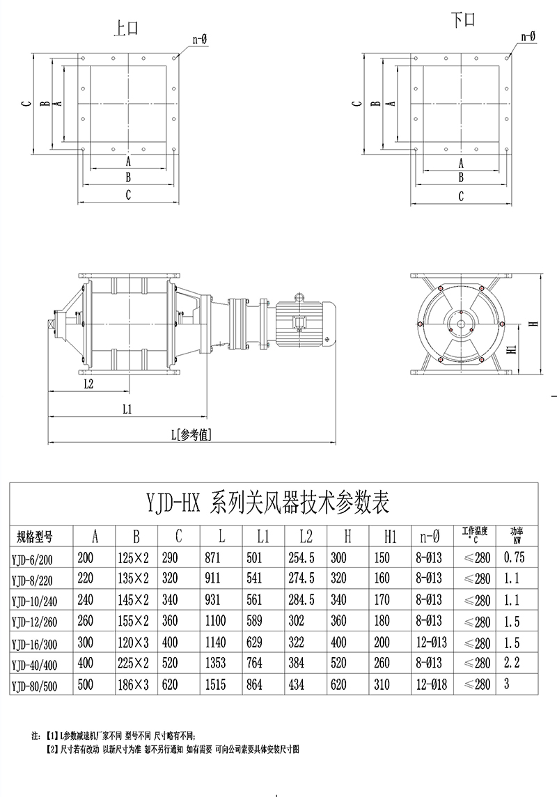 YCD型卸料器結構緊湊,造型美觀,使用方便。運轉平穩,噪音低。由于軸承、齒箱離開殼體一段距離,對于高溫、潤滑都有較大改善。是為環保、冶金、化工、糧食、食品等工業部門廣泛應用。除塵設備排灰、送風和其它設備給料的主要設備,適用于粉狀物料和顆料狀物料。 YJD星型卸料器用于安裝在負壓下工作的卸料器的排料口處,上部接受卸料器排出的物料,依靠旋轉的葉輪起著輸送物料的作用,又擔負著密封的作用,防止氣力輸送過程中從排料口吸入空氣,保證卸料器的正常排料。
